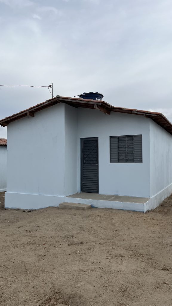 Com 44 m² de área construída, cada casa é composta por sala, dois quartos, cozinha, banheiro e área de serviço. O conjunto habitacional foi projetado para garantir segurança, funcionalidade e melhores condições de vida às famílias beneficiadas.